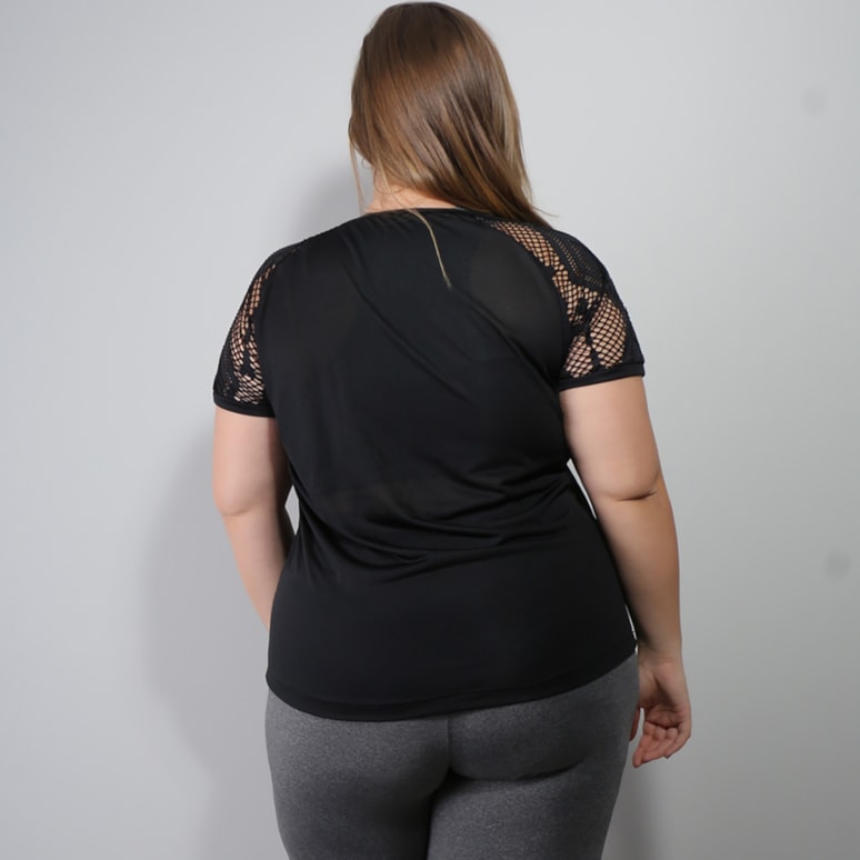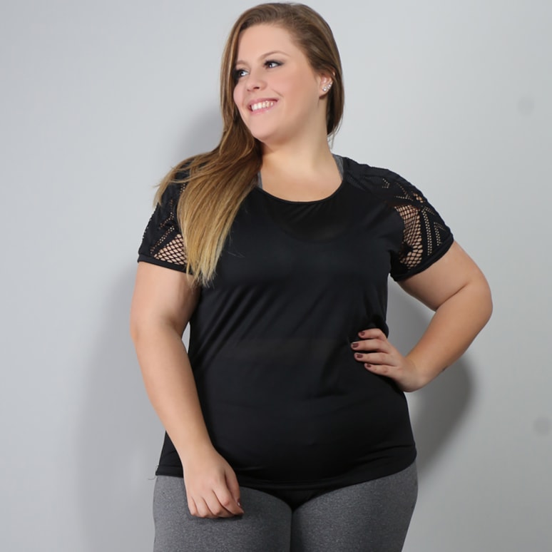 Body plus size preto sem bojo fabricado em suplex de poliéster com decote de tiras que podem ser amarradas