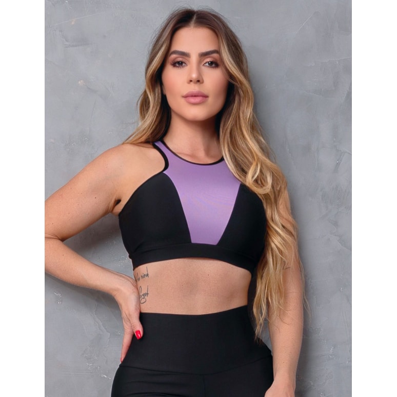 Top Esportivo Feminino sem Bojo com Recortes em Tela e Cirrê