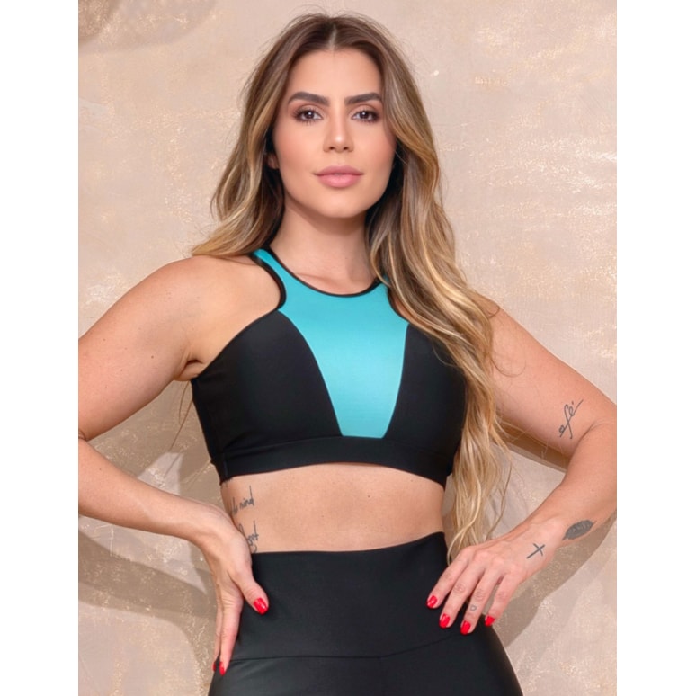 Top Cropped Ombro Só sem bojo com Recorte Colorido para Academia