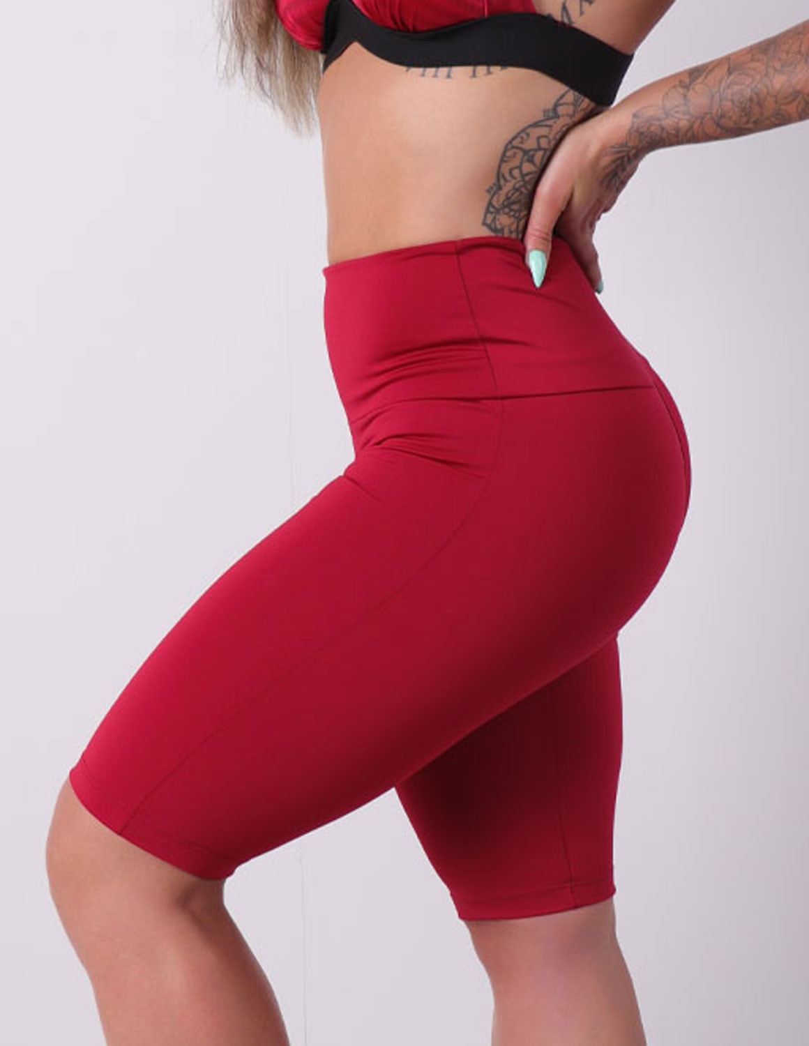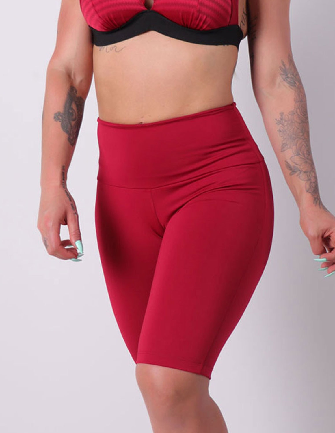 bermuda feminina estilo ciclista fabricada em suplex de poliéster na cor vinho.