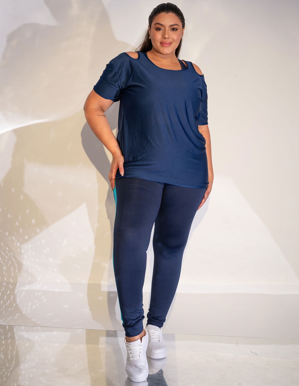 blusa feminina fitness plus size fabricada em dry fit de poliéster na cor azul marinho. o modelo possui um design moderno que permite que você possa atingir o máximo do seu desenho físico com muito conforto. o tecido dry fit ajuda na absorção e evaporação do calor e do suor produzidos pelo corpo, isso deixa o tecido ainda mais leve. a modelagem ainda inclui cortes nos ombros em forma de gota, dando um toque a mais de charme ao modelo.