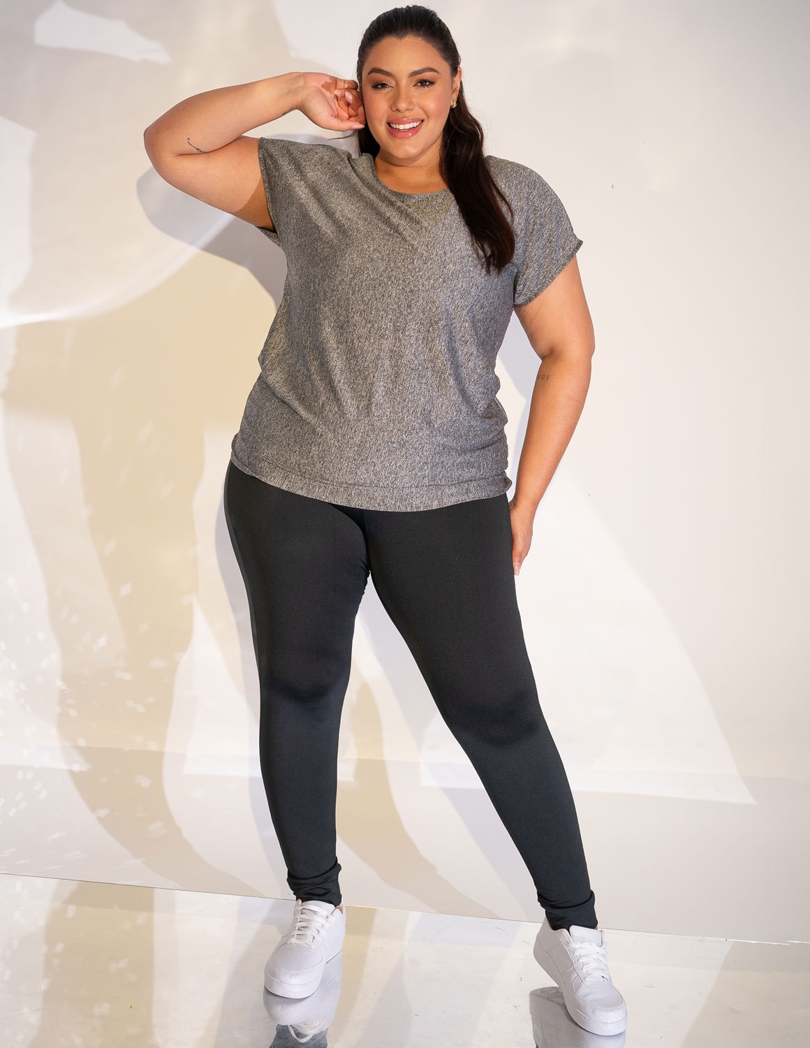 blusa fitness feminina plus size confeccionada em dry fit de poliéster na cor mescla. modelo super leve, moderno, com um design lindo e único. o tecido dry fit ajuda a absorver o suor e o calor que são produzidos pelo seu corpo durante as suas atividades físicas, isso deixa você com bastante conforto. a modelagem ainda inclui manguinhas curtas que deixam a blusa ainda mais charmosa.
