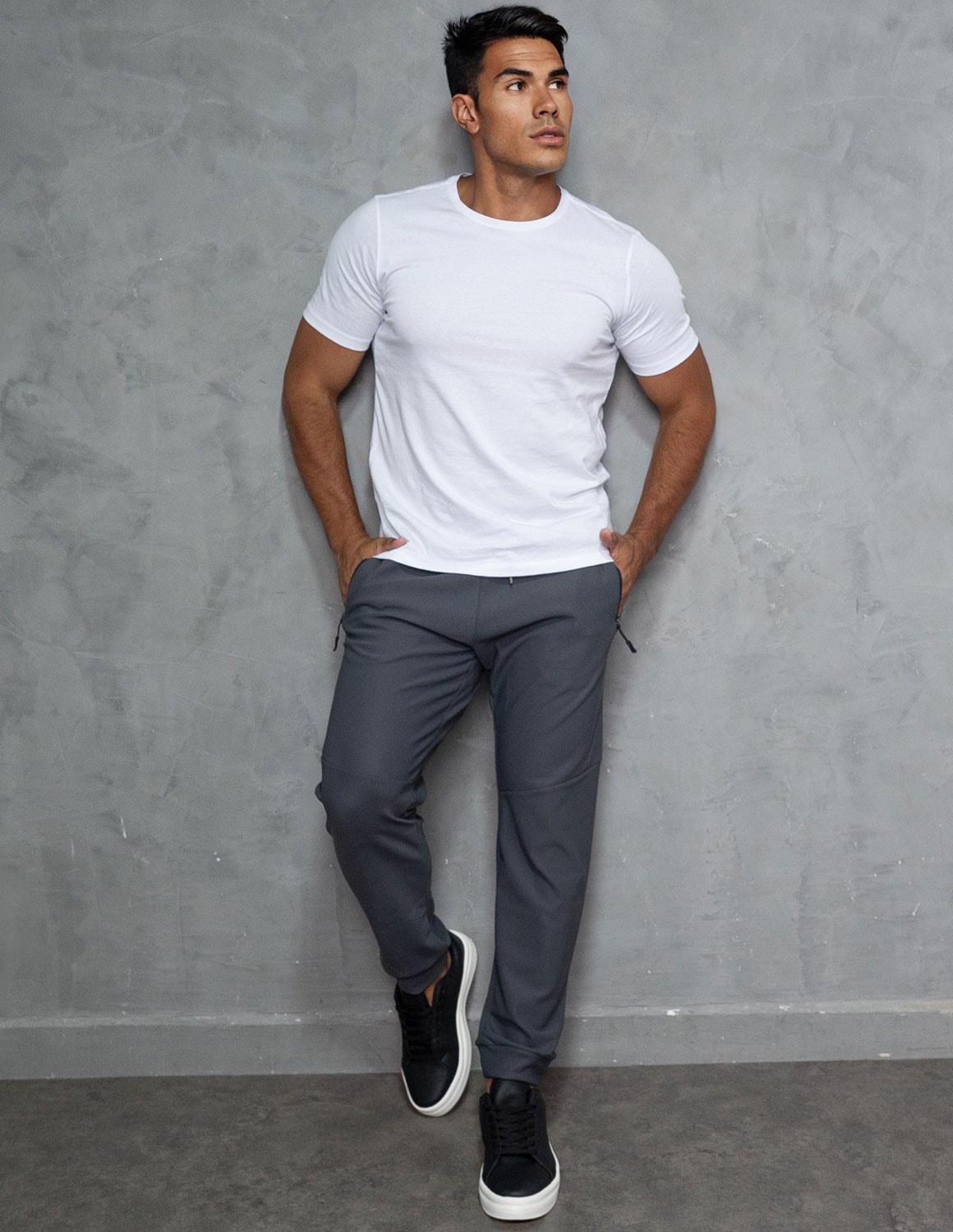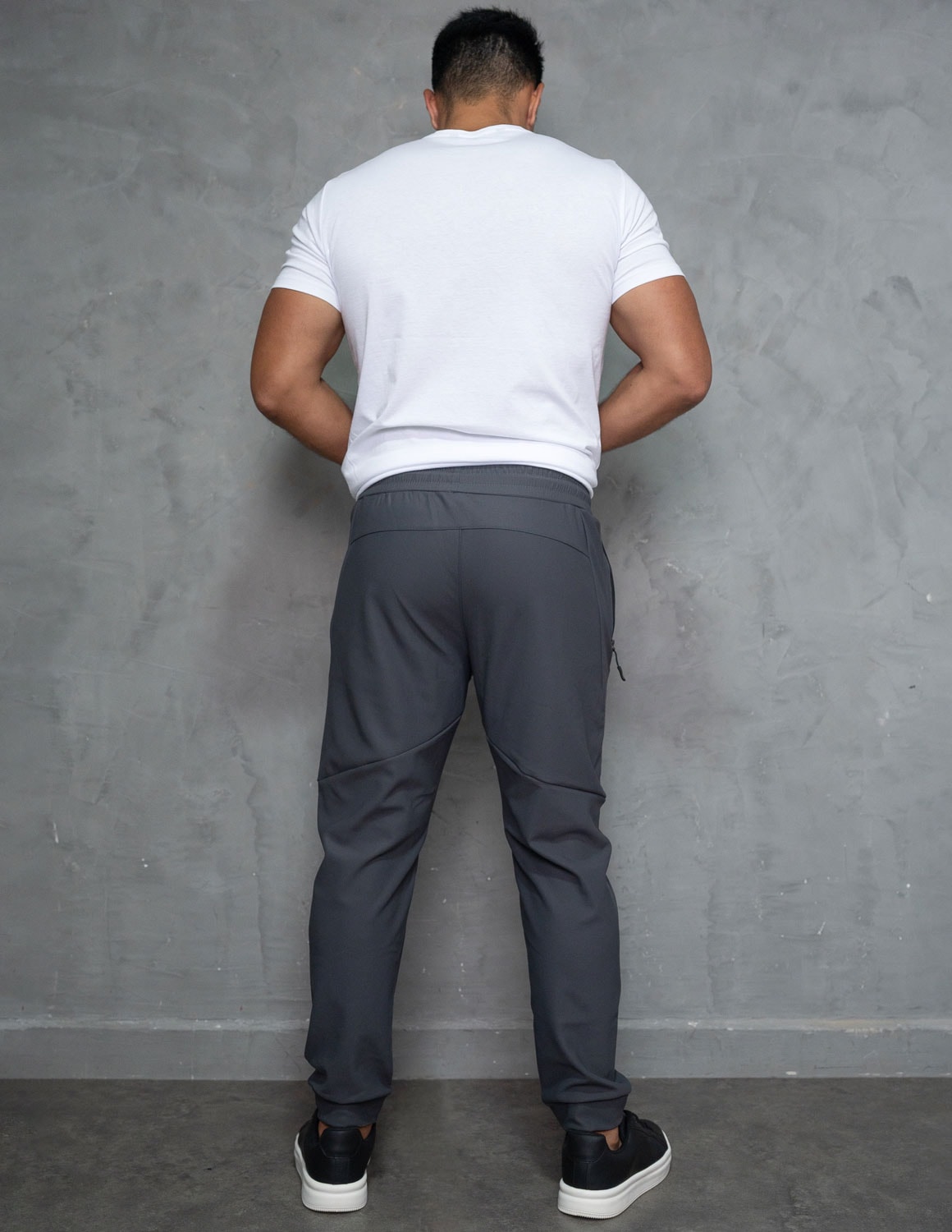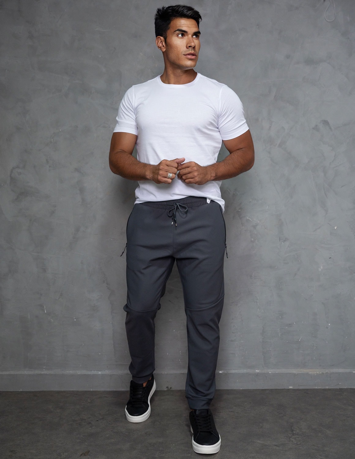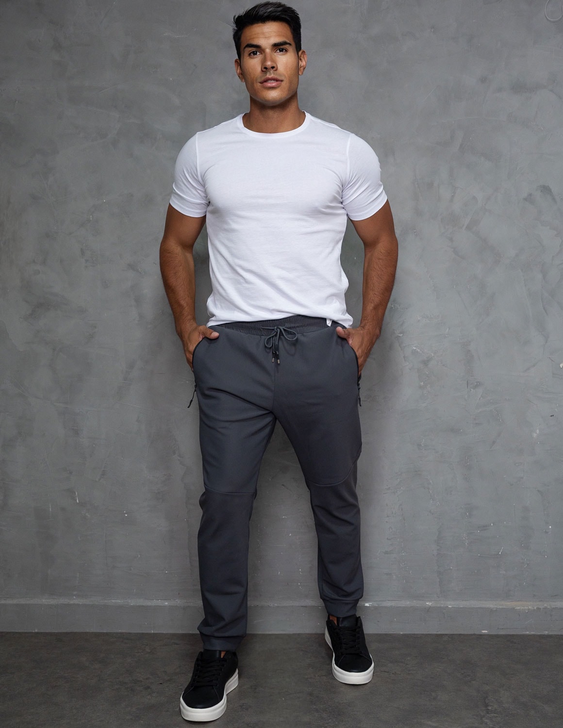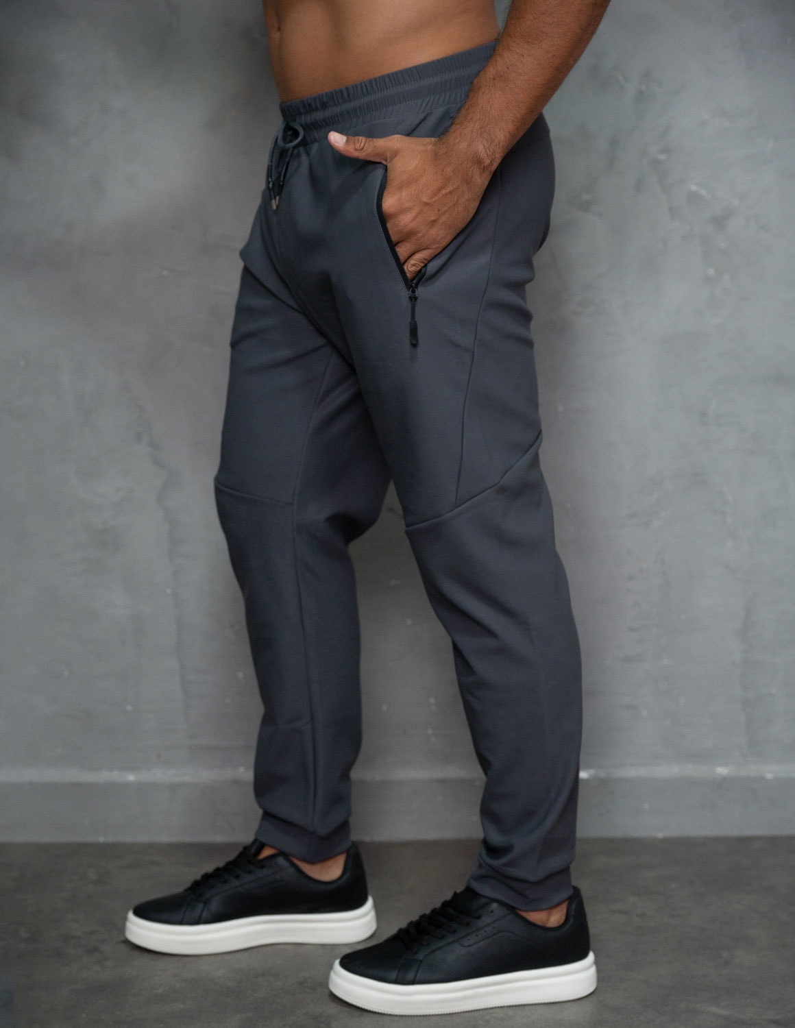 seu design moderno apresenta modelagem ajustada, valorizando a silhueta masculina sem apertar. conta com cós elástico com cordão ajustável, permitindo ajuste perfeito ao corpo. os bolsos laterais com zíper unem praticidade e segurança, mantendo os pertences protegidos e o visual limpo e sofisticado. a barra apresenta caimento ajustado, mantendo o visual alinhado.