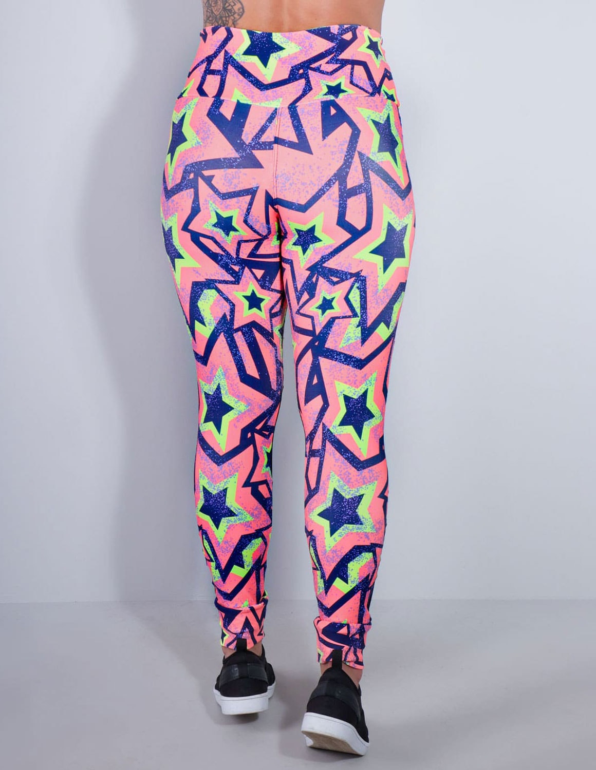 calça feminina fitness fabricada em suplex de poliéster estampado com recortes de tule preto nas pernas