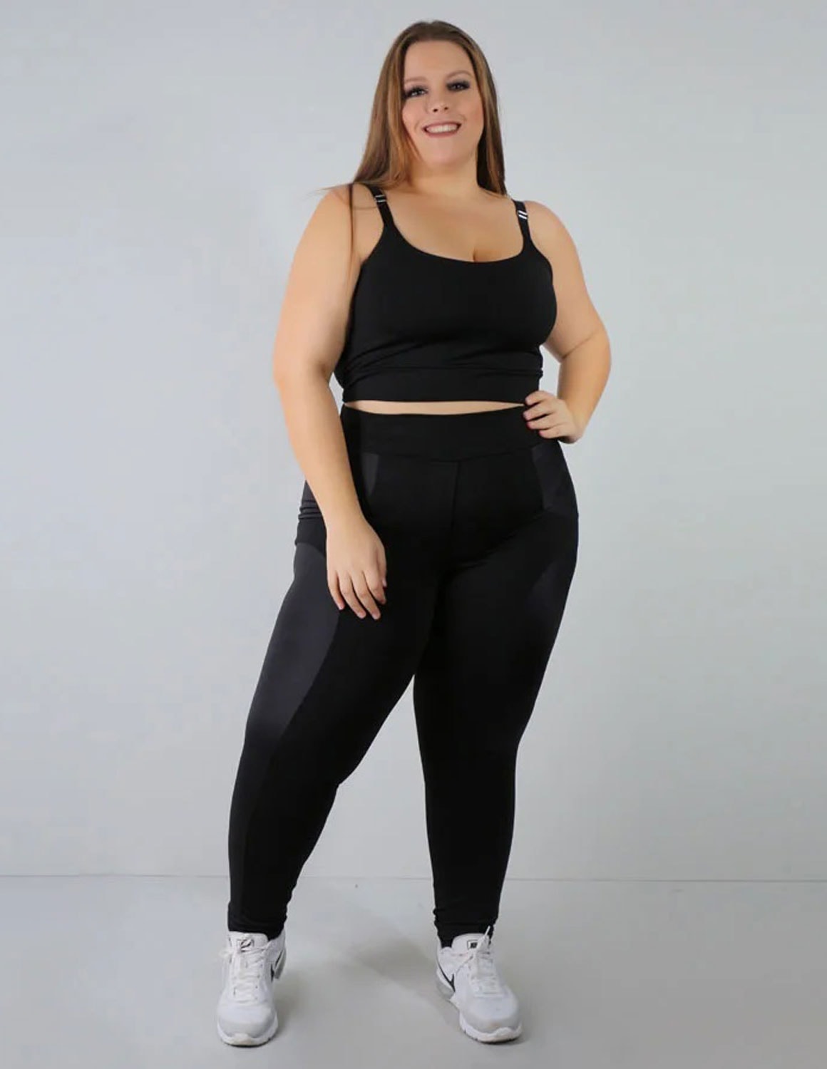 calça legging plus size fabricada em suplex preto de alta qualidade. modelo confortável, se ajusta ao seu corpo de forma ideal e proporciona bastante liberdade para seus movimentos. o design inclui recortes em cirrê preto, acabamentos que deixam a modelagem mais sofisticada e moderna. possui cós com elástico embutido que evita que a calça deslize pelo seu corpo. calça linda que pode ser usada em atividades físicas ou no seu dia a dia.