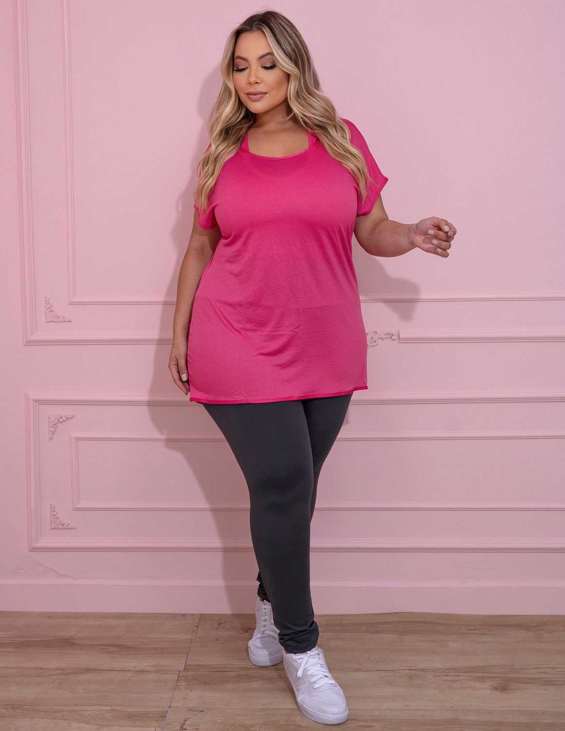 camiseta feminina fitness plus size para academia em dry fit furadinho.