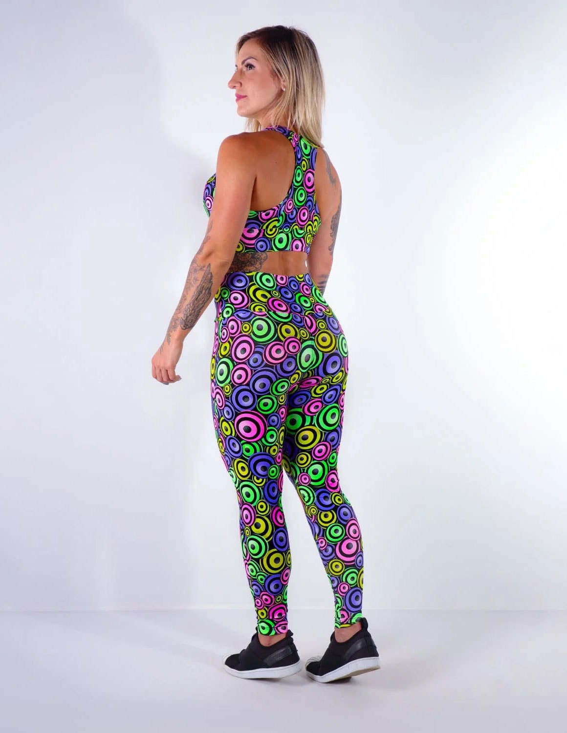 conjunto feminino fitness estampado em suplex de poliéster com calça (4.4.1618) e cropped com bojo (4.4.1820)