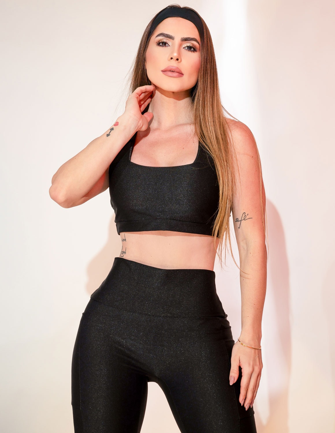 o brilho acetinado sobre o canelado confere um visual sofisticado e único. o top destaca-se pelas alças cruzadas, que valorizam as costas e oferecem firmeza sem pesar no design. a calça conta com modelagem anatômica que realça as curvas, bolsos laterais funcionais e acabamento clean sem costura frontal, proporcionando estética moderna, elegante e antibulking.