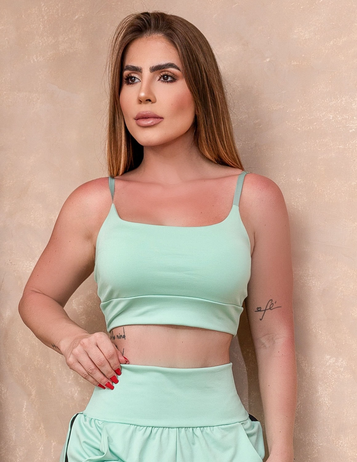 com decote reto e linhas femininas, o modelo valoriza o busto e a postura. a modelagem delicada e o acabamento refinado trazem um visual elegante e funcional, ideal para quem gosta de unir moda e performance. o bojo estruturado oferece suporte e modelagem natural, enquanto as alças ajustáveis garantem um caimento personalizado.