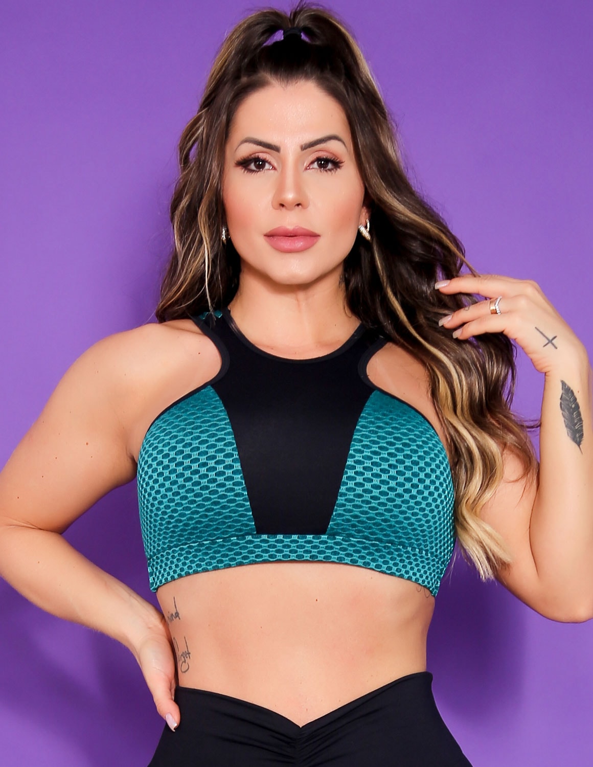 cropped fitness fabricado em poliamida texturizada, tecido de alta qualidade com toque macio.