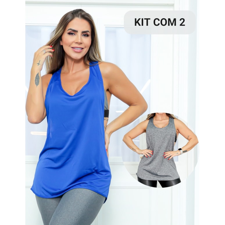Kit com 2 Camisetas Fitness Feminina em Dry Fit Cavada, nas cores: