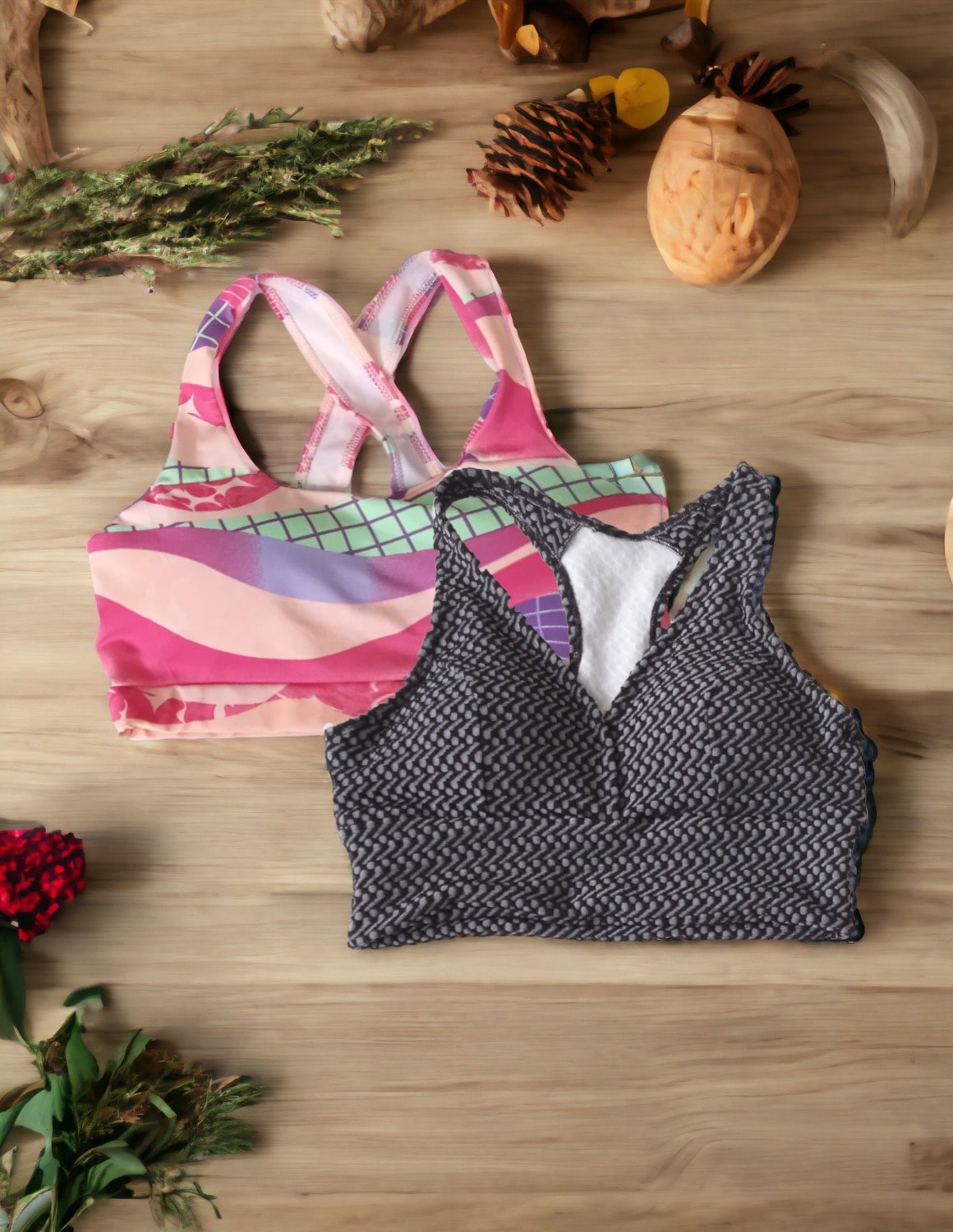 kit com 2 croppeds fitness com bojo com estampas e modelos diferentes