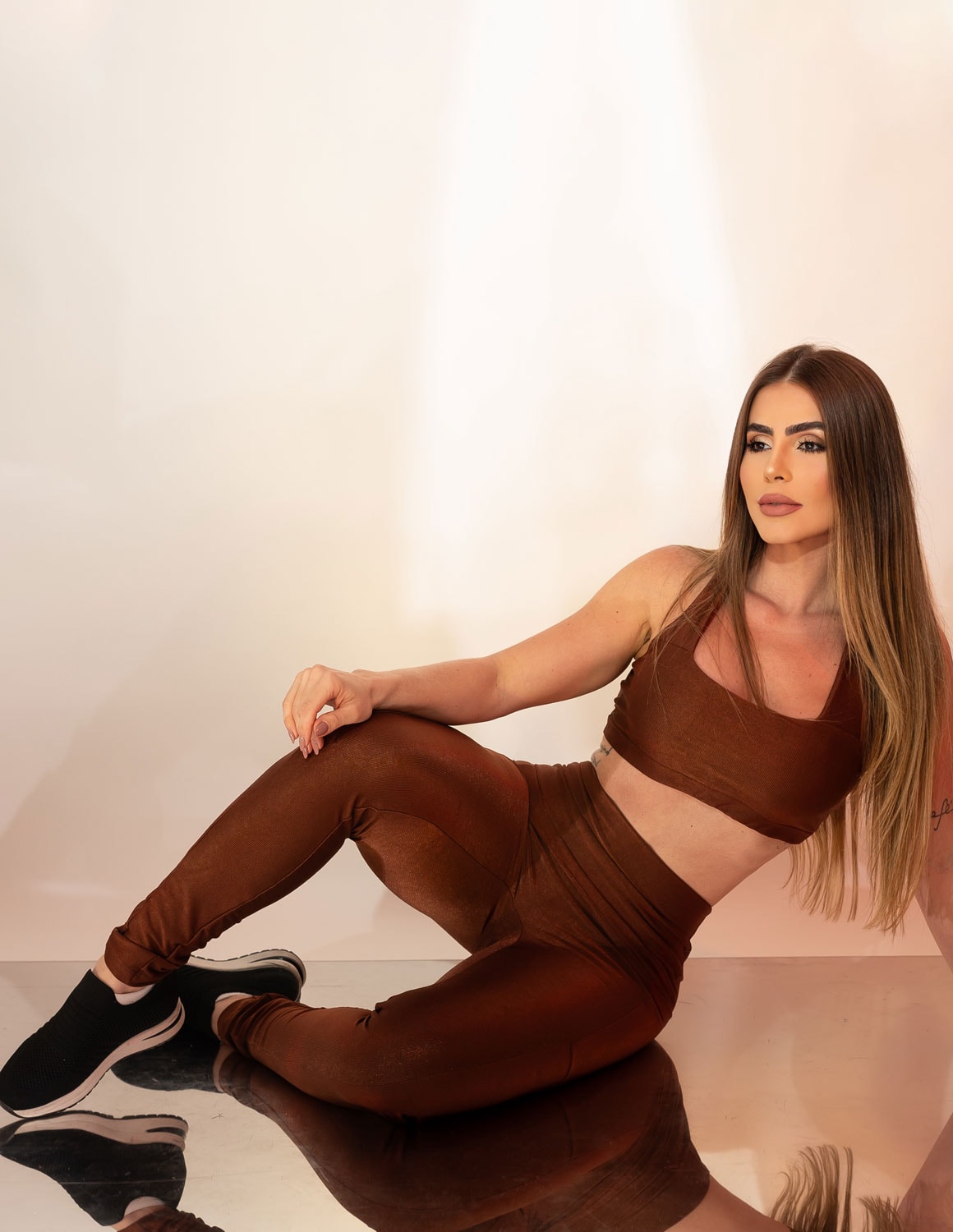 o conjunto acetinado shine une brilho sofisticado, tecnologia têxtil e caimento impecável para mulheres que buscam treinar com confiança e estilo. com efeito acetinado elegante e modelagem que valoriza as curvas, ele entrega presença e performance em qualquer ocasião — do treino ao look casual.