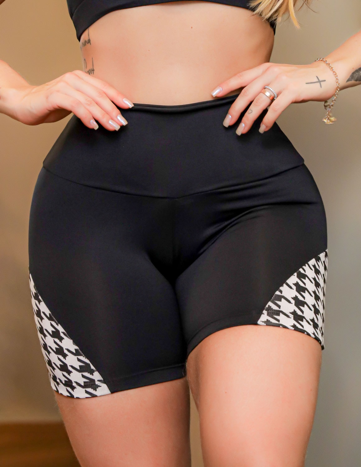 o short possui cós com camada dupla de tecido em altura média, ajudando assim na sustentação e valorização do abdômen e das curvas do quadril.