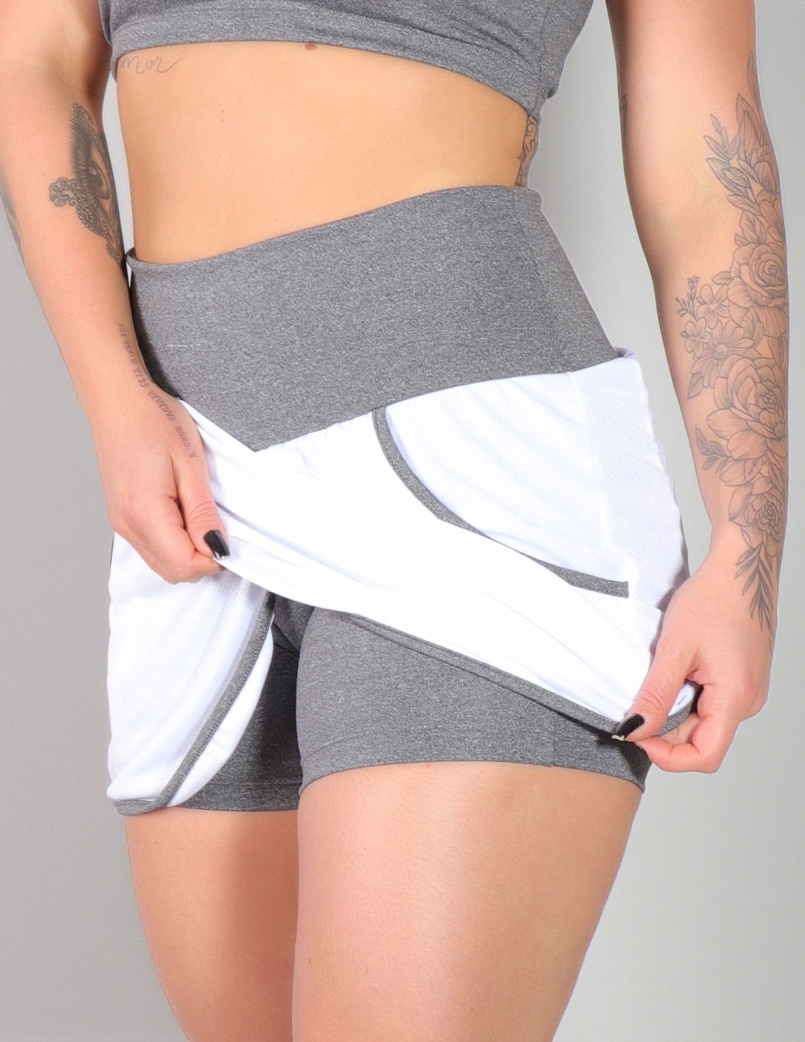 short saia feminino fitness fabricado em suplex de poliéster branco de alta qualidade com saia de dry fit mescla com bolsos