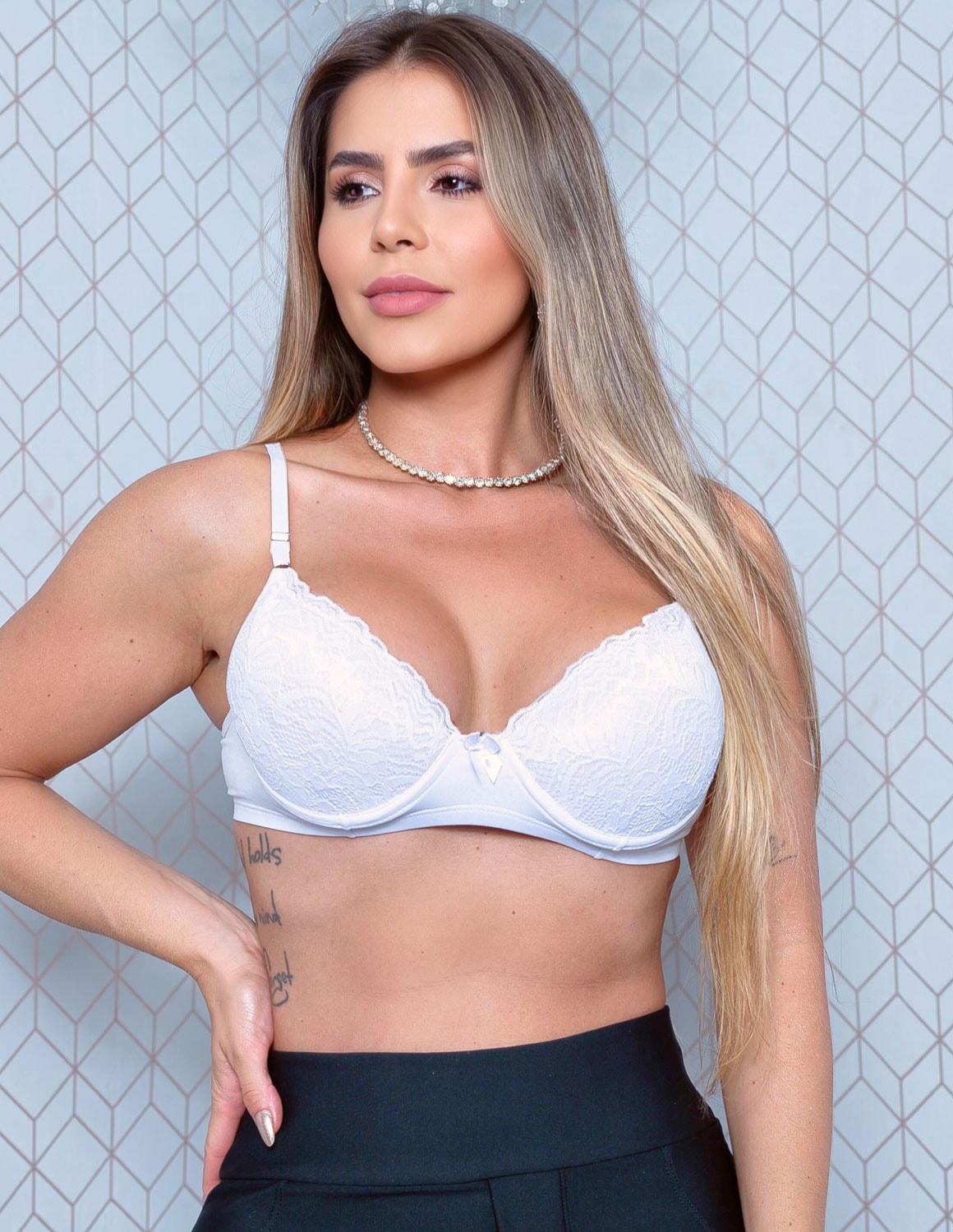 sutiã fitmoda com bojo estruturado e aplicação de renda.
