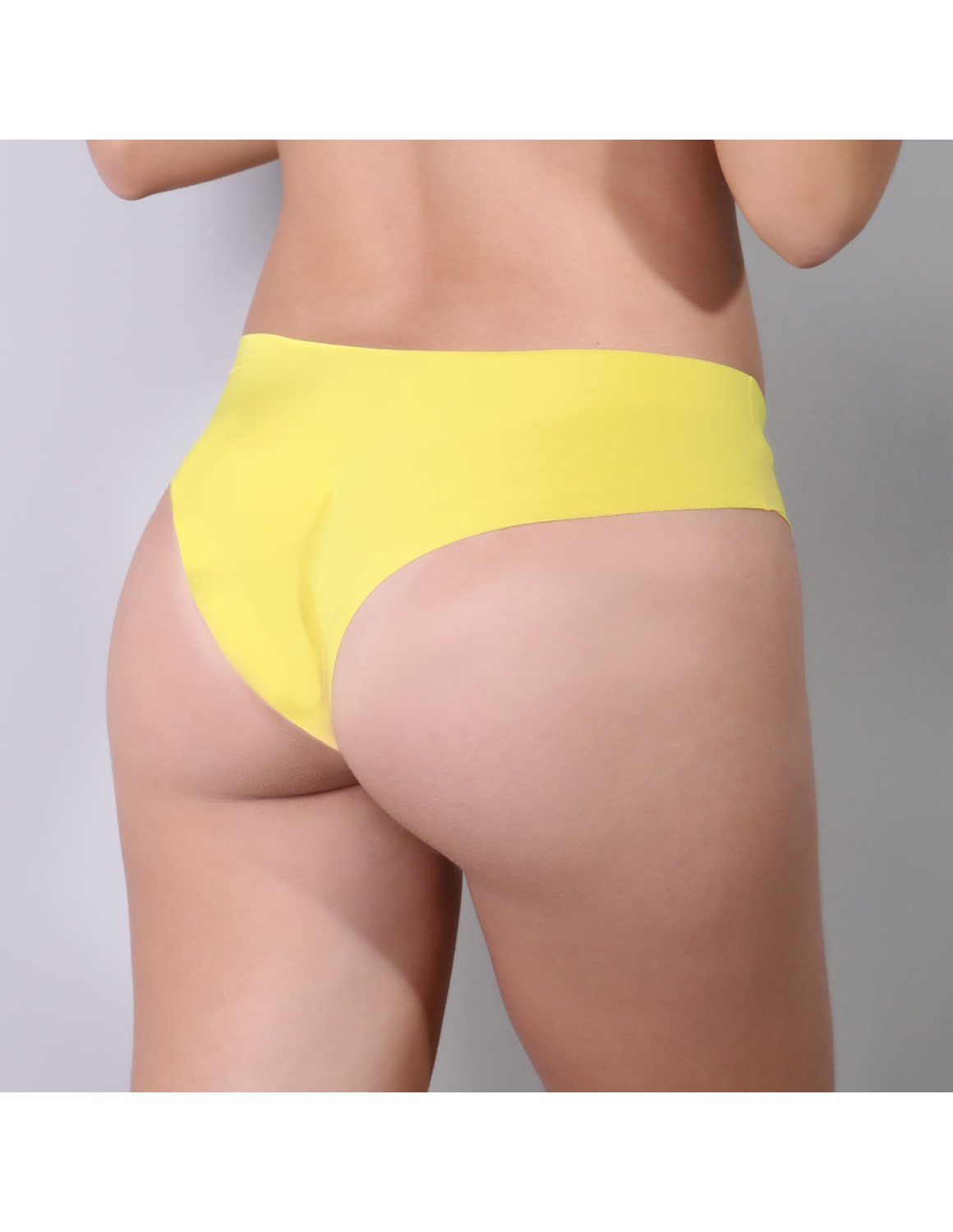 tanga fabricada em microfibra de poliéster na cor amarelo. modelo super confortável e que permite que você se movimente à vontade. a tanga não deixa marcas, por isso pode ser usada com roupas mais justas. possui aplicação de strass, dando um toque de charme ao modelo.