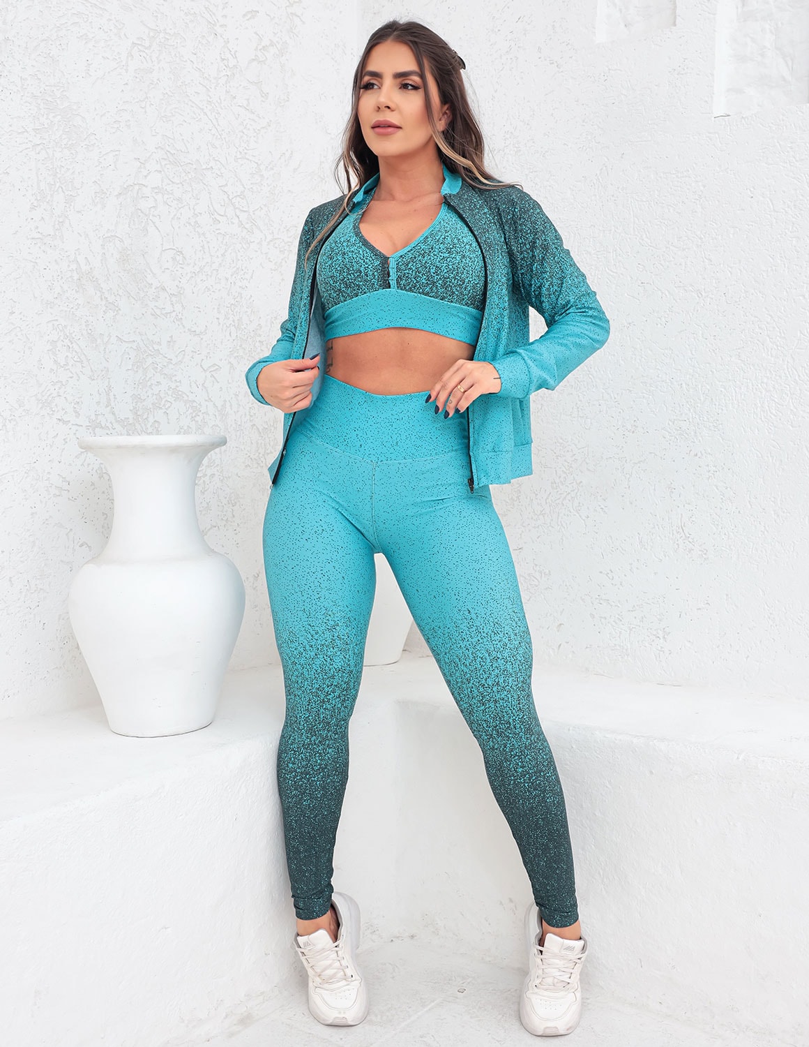 apresentamos o trio fitness bomber, uma combinação perfeita de estilo, conforto e funcionalidade. este conjunto foi criado para mulheres que desejam aliar elegância e praticidade em suas atividades físicas diárias. composto por um top, uma calça legging e um casaco bomber, este trio é ideal para diversas ocasiões, desde treinos intensos até momentos casuais.